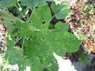 Рис.10. Лист мальвы, повреждённый клопами-слепняками