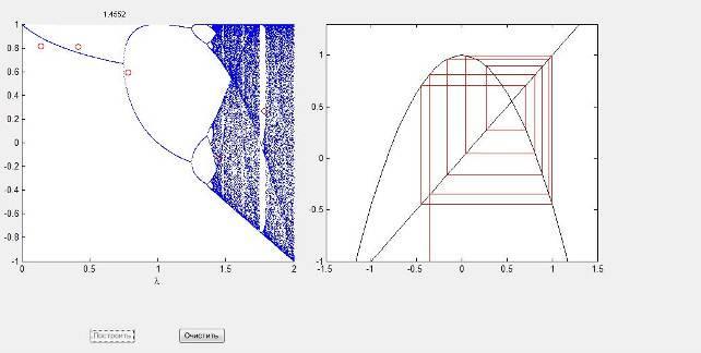 Создать программу, которая при щелчке мышью на бифуркационном дереве в отдельном окне строит итерационную диаграмму.