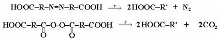 3) Полимеры с функциональными группами могут быть получены при использовании инициаторов, содержащих эти группы. При распаде таких инициаторов образуются свободные радикалы, содержащие функциональные группы.