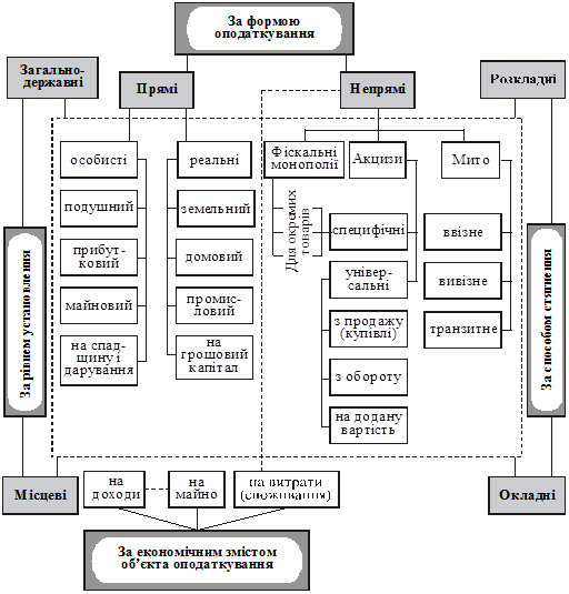 Можна класифікувати податки відповідно до природи доходів і видатків.