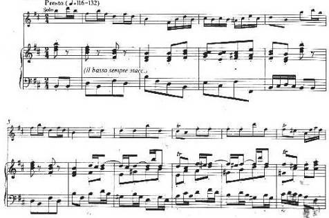 Говоря о сочинениях для солирующего инструмента с клавесином, надо помнить о различии, которое тогда проводилось между облигатным и сопровождающим чембало. В сонате с облигатным чембало оно (чембало) играло главную роль, так как вело несколько обязательных голосов, в то время как солирующему поручался лишь один. В этих случаях Бах пишет сонату для чембало и флейты.