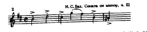 Одной из лучших сонат Баха для флейты является соната ми минор. Первая часть,Adagiomanontanto,- неторопливая, глубокая по своему эмоциональному содержанию музыка, требующая от исполнителя зрелого мастерства, понимания стилевых особенностей творчества композитора. Развитие тематического материала, сопровождаемое динамическим нарастанием, образует как бы четыре большие звуковые волны, следующие одна за другой.