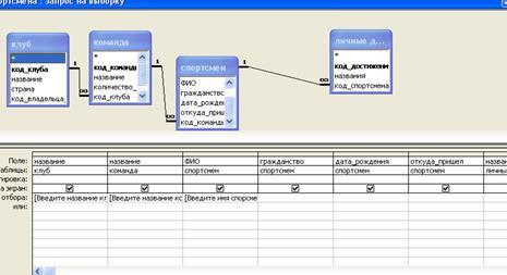 Запрос «Выбор спортсмена» представлен в режиме «Конструктор» (рис.17):