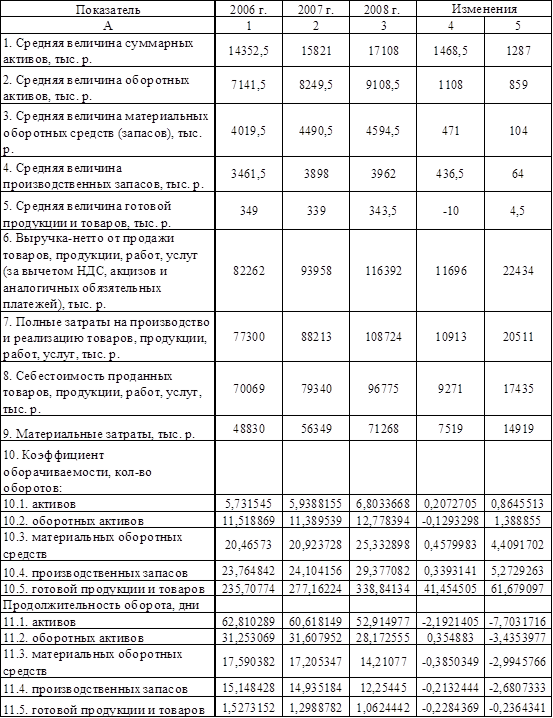Рост коэффициента оборачиваемости производственных запасов в 2007 году составил 0,34 при сокращении периода оборота на 0,2; а в 2008 году – на 5,27, при сокращении периода оборачиваемости на 2,68. По материальным оборотным средствам соответствующие показатели составили – 0,45 и 0,38; 4,41 и 2,99.