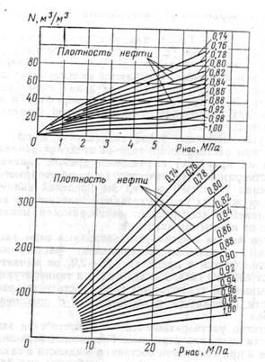Этот метод основан на использовании эмпирических графиков, построенных по большому количеству экспериментальных данных и связывающих характеристики дегазированной и пластовой нефти. Несмотря на получаемую при этом сравнительно низкую точность, расчетный метод довольно широко распространен вследствие исключительной простоты и удобства.