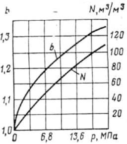 Для газированной нефти коэффициент сжимаемости значительно возрастает, достигая иногда 140∙10-4