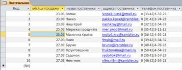 - Постачальник – код поставника (ключове поле), назва поставника, адреса поставника, телефон поставника.