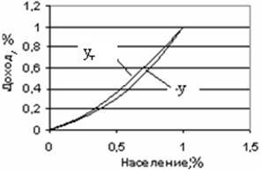 Анализ удаленности кривых распределения доходов от идеальной кривой Лоренца