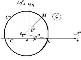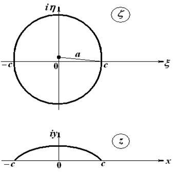 Если центр окружности смещен по вертикали, но проходит через точки и , то в физической плоскости эта окружность отобразится на часть окружности, которую называют дужкой (рисунок 1):