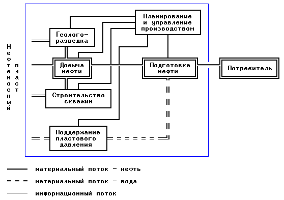1) данному комплексу свойственна тесная технологическая связь с переработкой и транспортировкой продуктов, что создает предпосылки для формирования сквозного материального потока от исходного сырья (нефти) до конечного потребления (отпуск нефтепродуктов через АЗС);