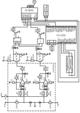 Операционный усилитель не терпит большой разницы напряжения между входами. Для защиты входов от перенапряжения используются диоды, включенные между входами встречно - параллельно VD1-VD8 и VD11-VD18 типа КД503А.