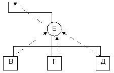 “Сторож” - это индивид, занимающий такое место в структуре, которое позволяет ему регулировать потоки сообщений, идущие по данному каналу. Функция “сторожа” аналогична функции вентиля. Если вы когда-нибудь пытались срочно встретиться со своим шефом, а его секретарша сказала, что он “на конференции”, вы поймете, что такое “сторож”. Секретари, конечно, лишь один из видов “сторожей”. Любой индивид в любой коммуникационной сети, формальной или неформаль-ной, который вклинивается в цепь коммуникации, является “сторожем”. Например, в цепи коммуникации А® Б®В индивид Б играет роль “сторожа”. Аналогично индивид, занимающий должность, через которую проходят сообщения, является в известной мере “сторожем”. Например, в трехуровневой структуре, показанной на рис.19, индивид Б выполняет функции “сторожа”.