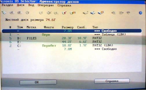 Рисунок 1 - Головне вікно Acronіs OS Selector