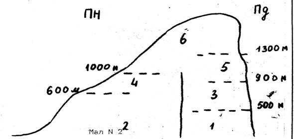 З поданої схеми видно, що в передгірській частині, на висоті до 600 метрів, спостерігається лісостепова рослинність (типчак, ковила, пирій, стоколос, півонія, чебрець, горицвіт, таволга), а на висоті 600-1000 метрів розташовується зона широколистих лісів.