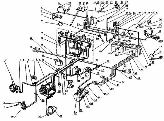 67 Реле стартера;68 Жгут;69 Жгут;70 Выключатель;71 Чехол;72 Аккумулятор;