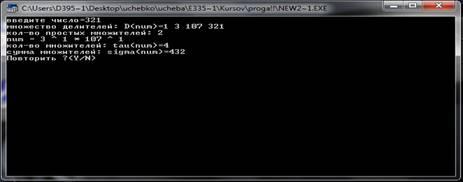 множество делителей=1 3 7 21, кол-во простых множителей=2