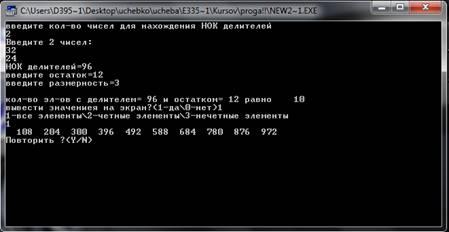 3. нахождение НОД и НОК для заданной совокупности натурального ряда;