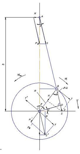 Схема сил, що діють на КШМ.
