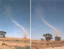 ПРОЗРАЧНОЕ ТОРНАДО. Вихри в нижней части материнского облака сформировали прозрачное торнадо. Коснувшись поверхности земли оно заполнилось пылью и стало видимым