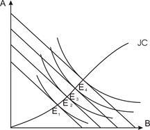 . В идеале наиболее оптимальный выбор при совпадении точки касания кривой безразличия с бюджетной линией с точкой Е1