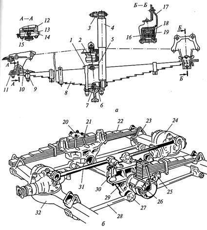 Рисунок 7 Передняя (а) и задняя (б) подвески грузовых автомобилей