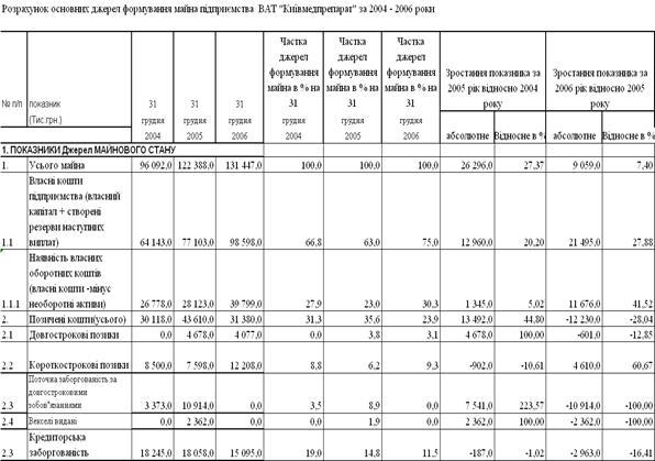 Інформаційне забезпечення: бухгалтерська, фінансова та управлінська звітність підприємства ВАТ “КИЇВМЕДПРЕПАРАТ” (м.Київ) за 2004 – 2006 роки.