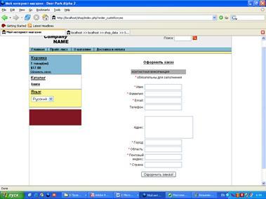 - форма отправки заказа.