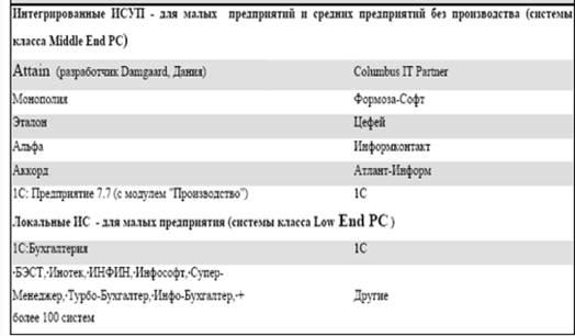 В настоящее время не существует КИС российского происхождения, полностью отвечающих требованиям модели ERP. Поэтому для рассмотрения возможных вариантов автоматизации предприятия были взяты западные КИС, отвечающие требованиям ERP-модели и имеющие наилучшие позиции на российском и мировом рынках ERP-систем.