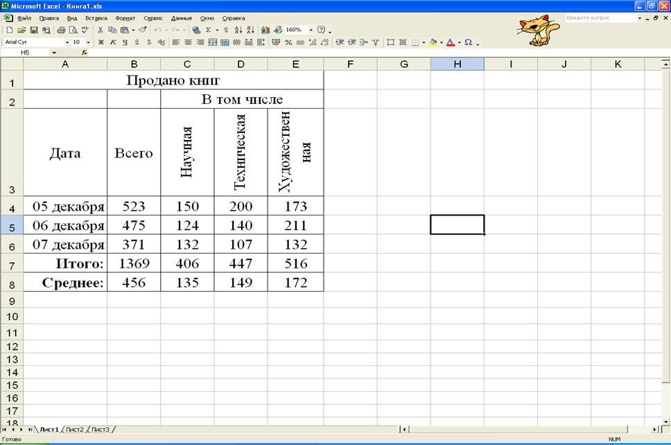 В программе Excel на листе 1 набрать таблицу и отформатировать ее.