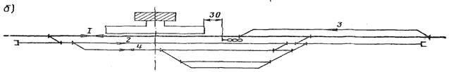Сравнивая потребную длину станционной площадки с фактической, выбирают тип промежуточной станции. При этом начинают сопоставление указанных длин станционных площадок с продольного типа. Если фактическая длина станционной площадки больше или равна потребной для продольного типа, то выбирают для разработки продольный тип станции. Если же Lф