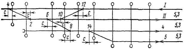 На приемо-отправочных путях при расстоянии между остряками, равном или более 8,66 м, а также на второстепенных путях