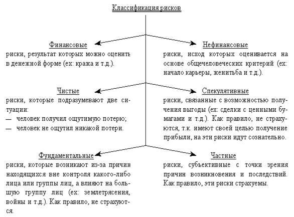 Фундаментальный подход к категории риска представлен Ф. Найтом в работе "Риск, неопределенность и прибыль". Он различает два вида рисков: 1) риски, объективная вероятность которых исчисляема, и которые могут быть застрахованы (такие риски становятся статьей издержек производства, вычитаемой из прибыли);