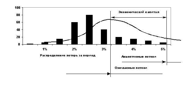 поддержание адекватного собственного капитала кредитора, т.е. соблюдение принципа достаточности уровня так называемого экономического капитала (см.рисунок), который является определенным буфером в случае возникновения каких-либо драматических для кредитора потерь, превышающих ожидаемый уровень;