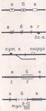 7. а) Насыпи; б) выемки (2-высота или глубина в метрах); в) участки с большими уклонами – более 0,020 (только в горных районах)