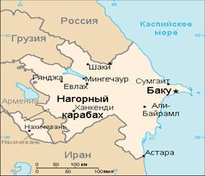 — расположен на юго-западном побережье Каспийского моря.Граничит с Россией (Дагестан) и Грузией (Квемо-Картли и Кахети) на севере, Арменией на западе и Ираном на юге. Нахичеванская Автономная Республика — эксклав Азербайджана — граничит с Арменией, Ираном и Турцией.
