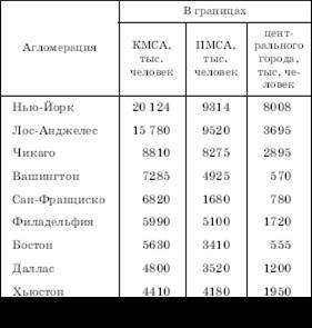 Впервые стандартные метрополитенские ареалы (СМА) были выделены Бюро цензов США при переписи населения 1950 г. Затем они стали называться стандартными метрополитенскими статистическими ареалами (СМСА), а позднее – метрополитенскими статистическими ареалами (МСА). В 1970-х гг. было введено подразделение таких МСА на две большие группы. Одну из них образуют так называемые первичные метрополитенские статистические ареалы (ПМСА), соответствующие отдельным агломерациям. Другую – консолидированные метрополитенские статистические ареалы (КМСА), соответствующие полицентрическим агломерациям, каждая из которых, в свою очередь, состоит из нескольких первичных МСА.