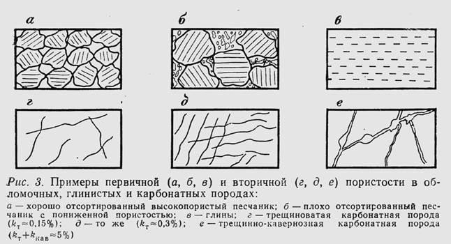 Трещиноватость наиболее характерна для плотных, низкопористых горных пород. Происхождение трещин чаще всего тектоническое, хотя в природе можно встретить трещины диагенеза (доломитизация карбонатов), трещины уплотнения и трещины автогидроразрыва в зонах образования аномально высоких пластовых давлений.