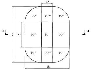 – суммарный объем призм треугольного сечения, прилегающих с четырех сторон к объему с основанием V