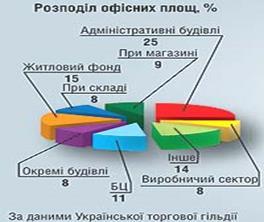 У столиці великий дефіцит якісних офісних приміщень, які, за даними Української торговельної гільдії, складають тільки 10% ринку. Невелику частку займають приміщення класу "В" – 50%, 40% приходяться на переустатковані виробничі й адміністративні приміщення в будинках, побудованих ще в часи СРСР. Результати проведеного аналізу засвідчують значну привабливість ринку офісної нерухомості м. Києва для активної діяльності інвесторів.