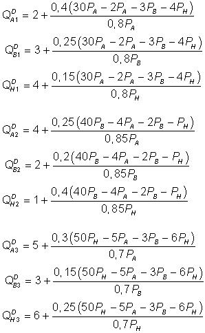 Из них выводятся следующие функции спроса: