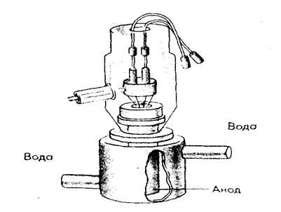 Любая электронная лампа представляет собой металлический, стеклянный или керамический баллон, внутри которого укреплены электроды (смотри рисунок 2). В баллоне создается сильное разрежение воздуха (вакуум), которое необходимо для того, чтобы газы не мешали движению электронов в лампе и чтобы электроды служили дольше. Катод - отрицательный электрод - является источником электронов. В одних лампах роль катода выполняет нить накала, в других нить служит миниатюрной электроплиткой, нагревающей трубчатый катод. Анод - положительный электрод - обычно имеет форму цилиндра или коробки без двух стенок, он окружает катод.