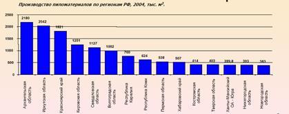 Произведен анализ лесной промышленности России: Общий объем промышленного производства лесопромышленного комплекса России составляет 10,1 млрд. долл. Объем экспорта составляет более 4,5 млрд. долларов.