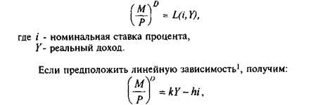 Оставляя в стороне наиболее сложный и противоречивый фактор - скорость обращения денег, по поводу которого отсутствует единство во взглядах среди экономистов, мы можем представить функцию спроса на реальные денежные остатки следующим образом: