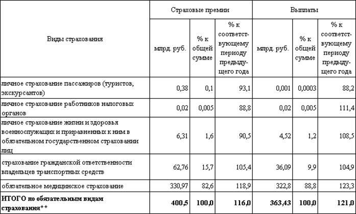 поступление страховых премий,
