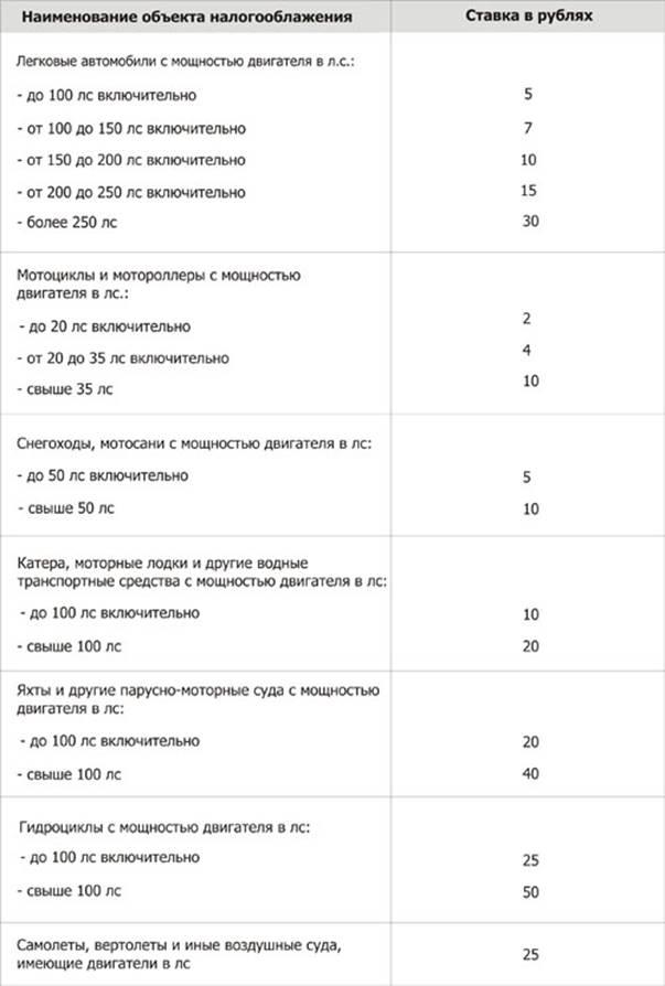 Ставка транспортного налога