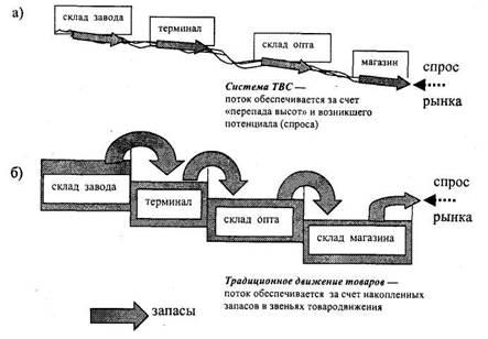 Принципиальное отличие системы ТВС от традиционного снабжения показано на рис. 4.