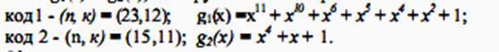 Количество ошибок, исправляемых кодами (15,11) и (23,12) соответственно будут равны 1 и 3. Кодовое расстояние определяется для этих кодов как