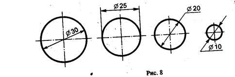 Чтобы размерные линии не пересекались с выносными, меньший размер наносят ближе к изображению, а больший - дальше (размеры 15, 30 и размер 110 на рис. 4).