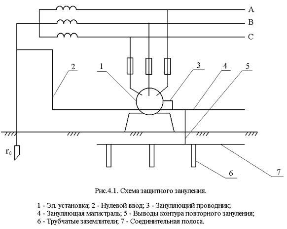 4. СХЕМА, НАЗНАЧЕНИЕ, ПРИНЦИП ДЕЙСТВИЯ И ОБЛАСТЬ ПРИМЕНЕНИЯ ЗАНУЛЕНИЯ. НЕОБХОДИМОСТЬ ПОВТОРНОГО ЗАЗЕМЛЕНИЯ НУЛЕВОГО ПРОВОДА