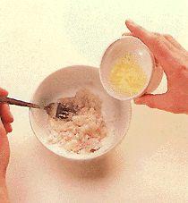 8 г свиного сала 50 г очищенных креветок 1.5г. соли 10г. кукурузной муки 1 яичный белок белый перец 40г. белого хлеба без корок 30 г кунжутных зерен 120г. растительного масла. |